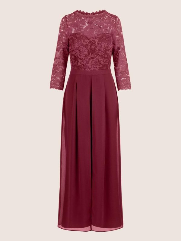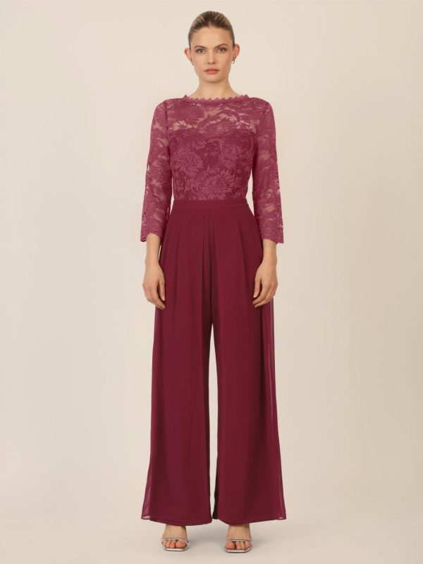 Abendoverall Mit Spitzentop Und Weitem Bein Bordeauxrot | DAMEN APART Fashion OVERALLS