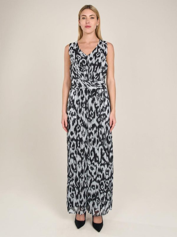 Leichter und luftiger Chiffonoverall mit einem auffälligen Design. Der ärmellose Schnitt und der tiefe V-Ausschnitt betonen die feminine Silhouette. Ein Wickeldetail in der Taille sorgt für eine schmeichelhafte Passform und setzt moderne Akzente. Die weiten, fließenden Hosenbeine verleihen dem Overall eine elegante Note und sorgen für hohen Tragekomfort. Der rückseitige Reißverschluss ermöglicht ein bequemes An- und Ausziehen. Perfekt für sommerliche Anlässe und elegante Veranstaltungen.