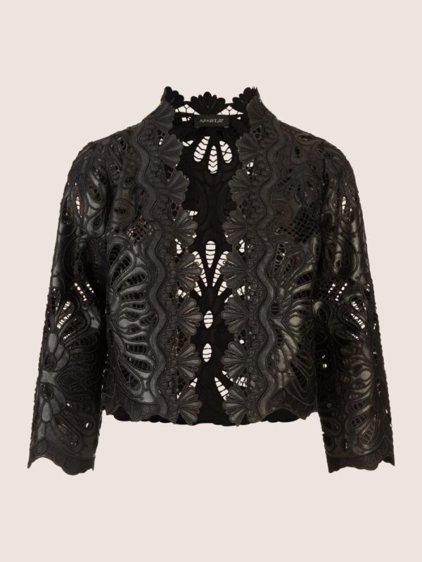 Kunstlederjacke Mit Allover Ornamentenstickerei Schwarz | DAMEN APART Fashion BLAZER & ANZÜGE
