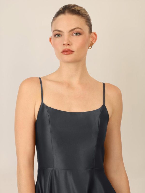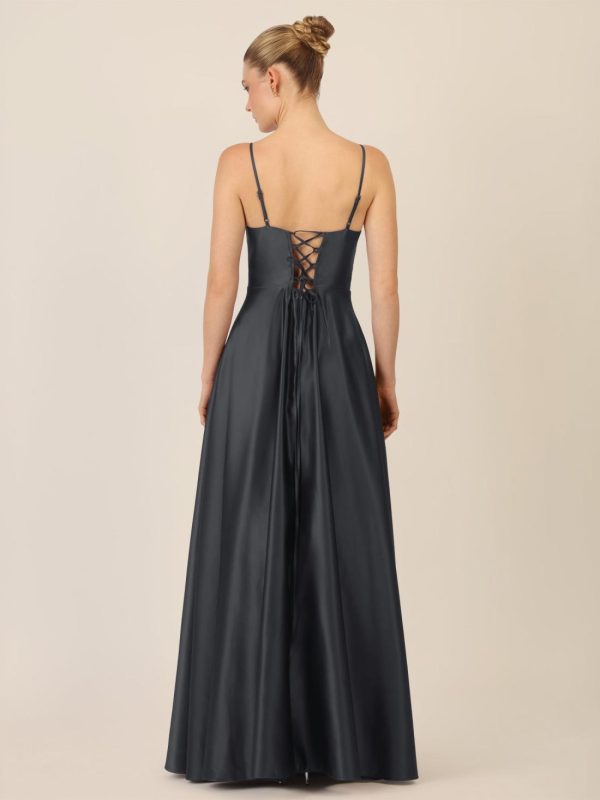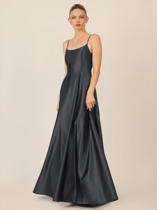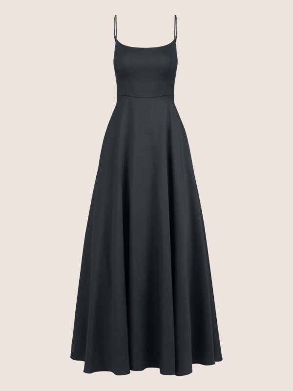 Langes Ballkleid Aus Satin Mit Spaghettiträgern Schwarz | DAMEN APART Fashion KLEIDER