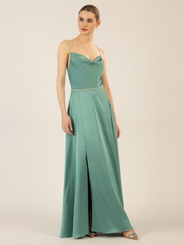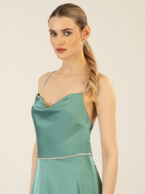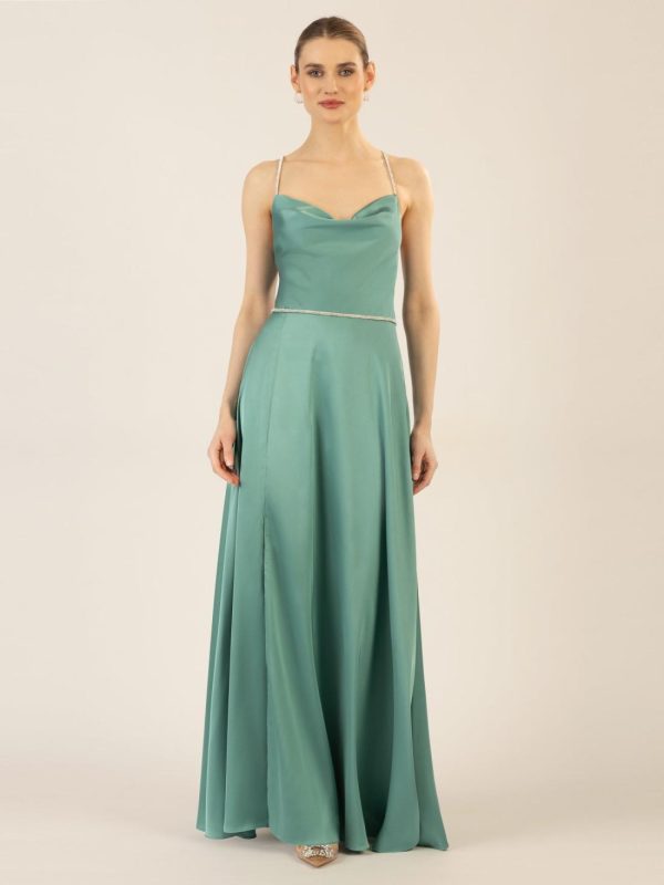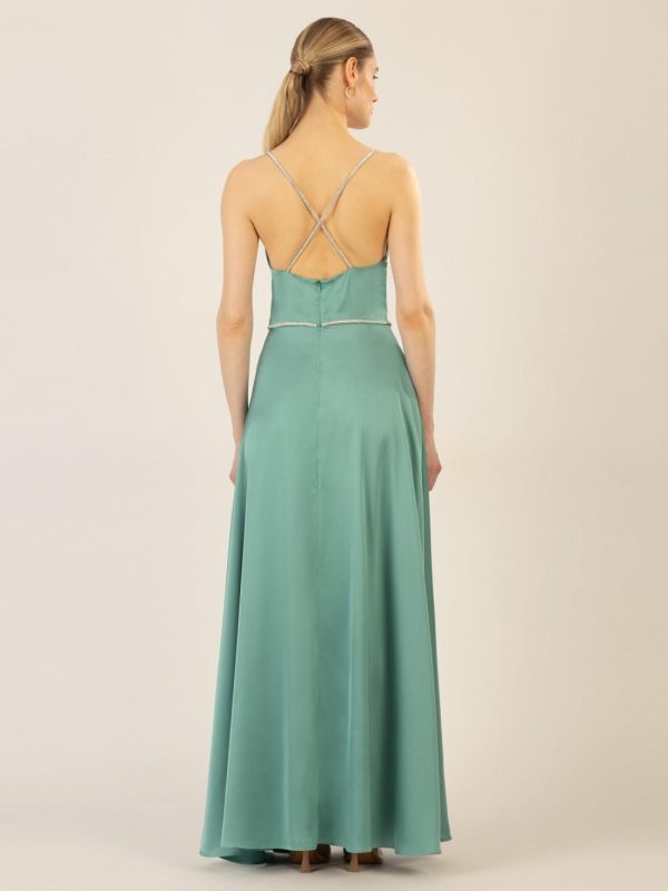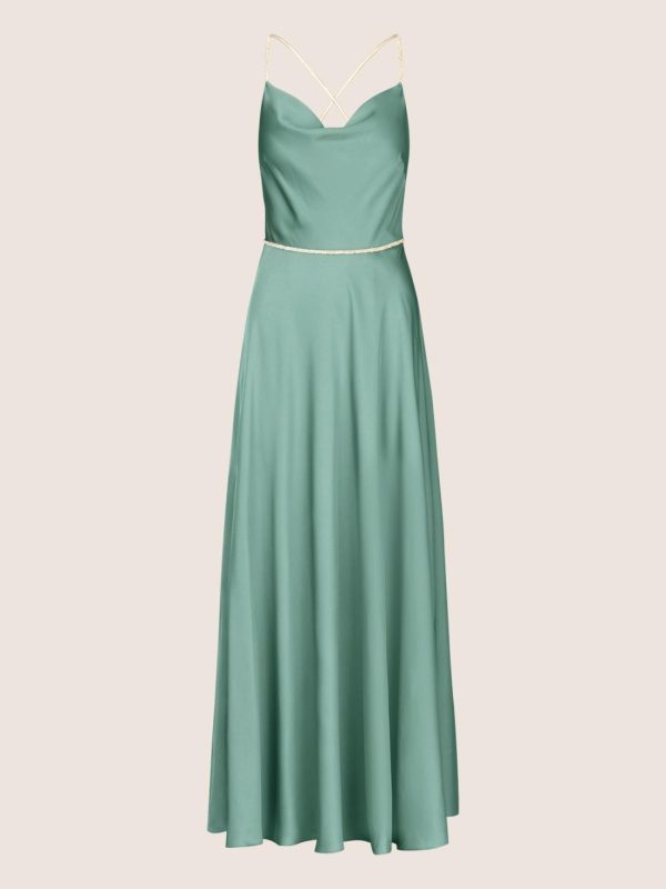 Edles Abendkleid mit filigranen Spaghettiträgern und eleganter Rückenpartie. Der figurbetonte Schnitt betont die Taille, während der fließende Rock für eine feminine und schwungvolle Silhouette sorgt. Das schlichte Oberteil harmoniert perfekt mit den zarten Trägerdetails und bietet eine zeitlose Optik.
