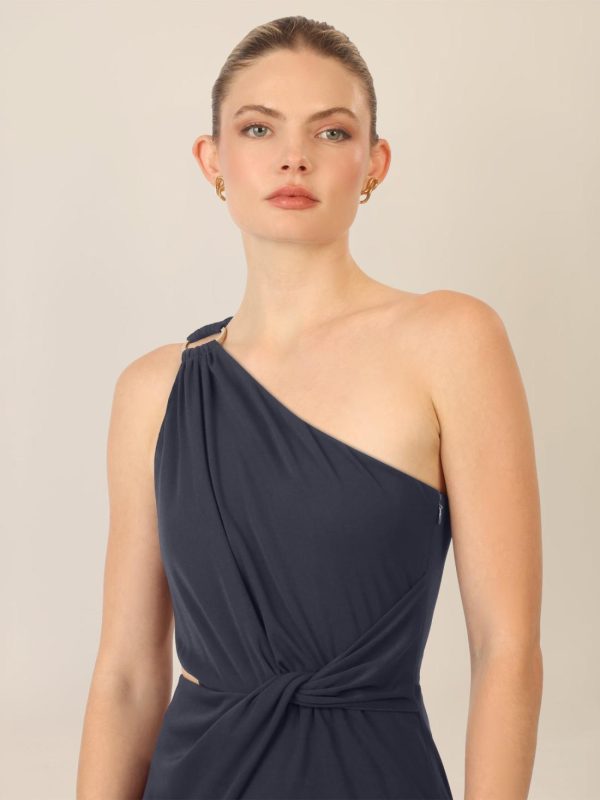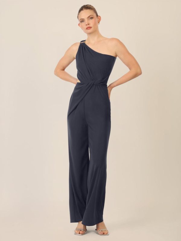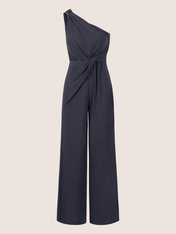 Dieser One-Shoulder-Overall bringt moderne Eleganz auf den Punkt! Gefertigt aus weicher Jerseyware, umschmeichelt er die Figur und setzt mit dem asymmetrischen Ausschnitt stilvolle Akzente. Ein goldfarbener Metallring an der rechten Schulter verleiht dem Look einen Hauch von Glamour, während kunstvolle Drapierungen an Schulter und Taille für Raffinesse sorgen. Besonders aufregend: der Cut-out über der Taille – ein echtes It-Detail! Der weit ausgestellte Beinverlauf im Marlene-Stil sorgt für einen fließenden Fall und einen femininen Auftritt. Mit seitlichem Reißverschluss und einer Seitenlänge von ca. 108 cm ist dieser Jumpsuit nicht nur stilvoll, sondern auch komfortabel. Perfekt für Abende mit Wow-Effekt!