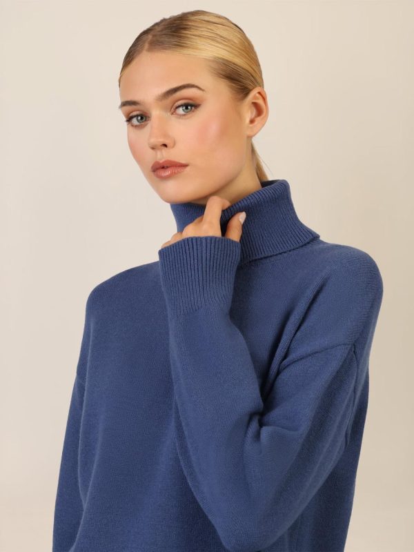Dieses kurze Strickkleid begeistert im lässigen Oversized-Look – perfekt für entspannte Fashion-Momente. Die hochwertige, soften Viskose-Kaschmir-Mischung sorgt für ein geschmeidiges Tragegefühl, während der große Rippen-Rollkragen dem Style eine cozy Note verleiht. Mit überschnittenen Schultern und weit geschnittenen Ärmeln ist es das ideale Piece für kühle Tage. Die gerade, legere Silhouette wird durch Rippenbündchen an Saum und Ärmeln abgerundet. Länge: ca. 94 cm.