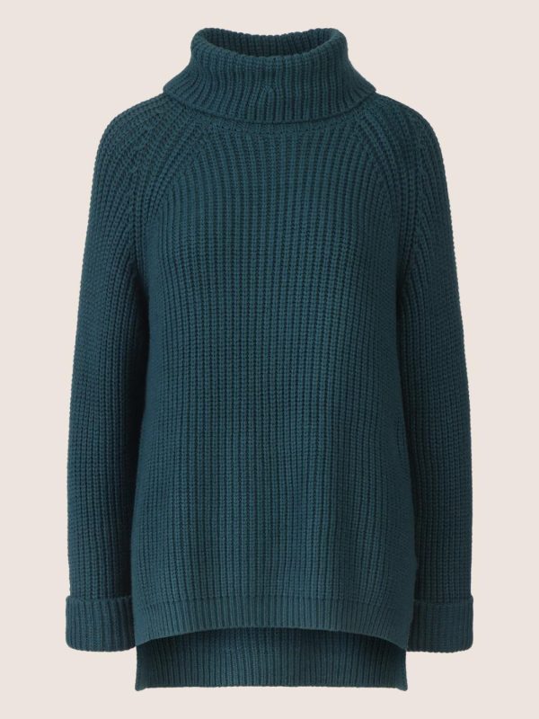 Gemütlich trifft auf luxuriös! Dieser oversized gestrickte Pullover aus einer soften Viskose-Kaschmir-Mischung ist das perfekte Fashion-Piece für stilvolle Wohlfühlmomente. Der weite, runde Ausschnitt wird von einem hohen, großzügigen Rollkragen begleitet – super soft und super trendy. Lange Raglanärmel mit liebevollen fully-fashioned Details und breitem Aufschlag bringen modische Lässigkeit ins Spiel. Die gerade, etwas verkürzte Front harmoniert mit der verlängerten Rückenpartie und den tiefen Seitenschlitzen – ein modernes Update für klassische Strickmode. Hinten ca. 74 cm lang und gestrickt im angesagten Halbpatent – dieser Pullover ist dein Must-have für entspannte Tage mit Style-Garantie!