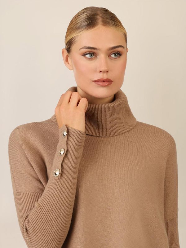 Oversized Pullover Mit Rollkragen Und Schmuckknöpfen Camel | DAMEN APART Fashion OBERTEILE