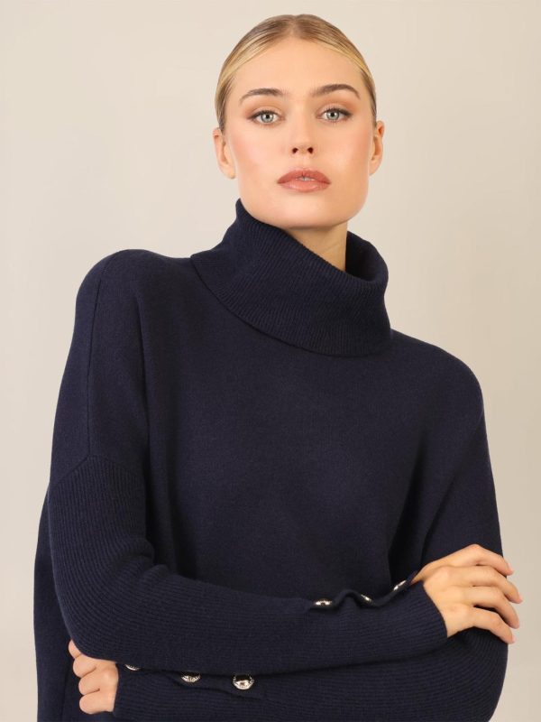 Oversized Pullover Mit Rollkragen Und Schmuckknöpfen Nachtblau | DAMEN APART Fashion OBERTEILE