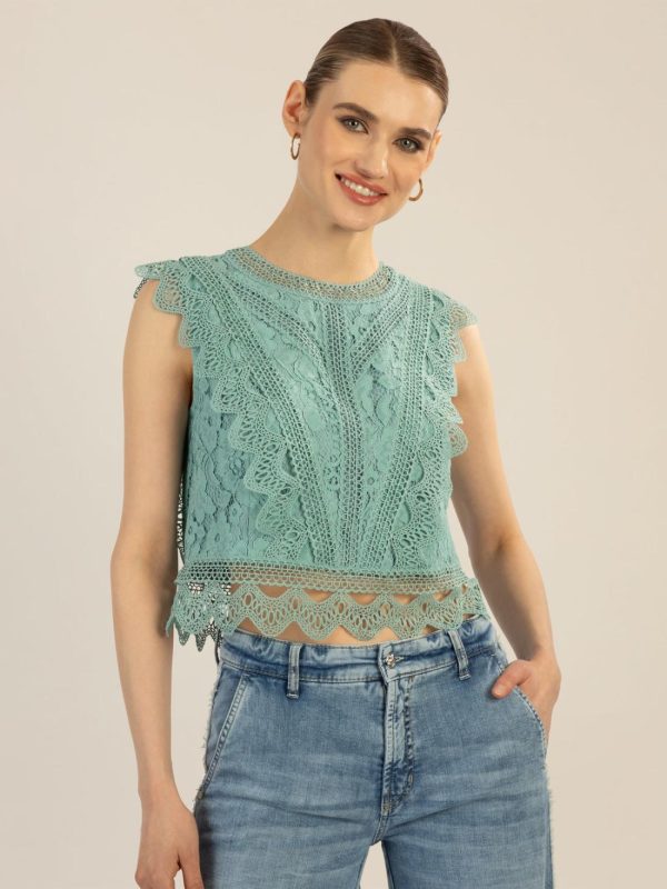 Spitzentop Aus Einer Plastischen Spitze Und Mit Spitzenband Verziert Jade | DAMEN APART Fashion OBERTEILE