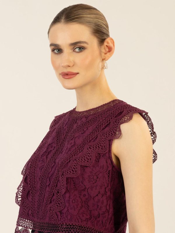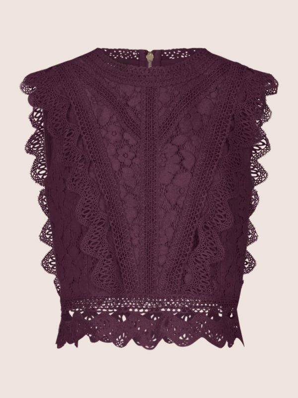 Spitzentop Aus Einer Plastischen Spitze Und Mit Spitzenband Verziert Pflaume | DAMEN APART Fashion OBERTEILE