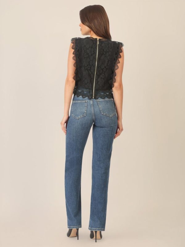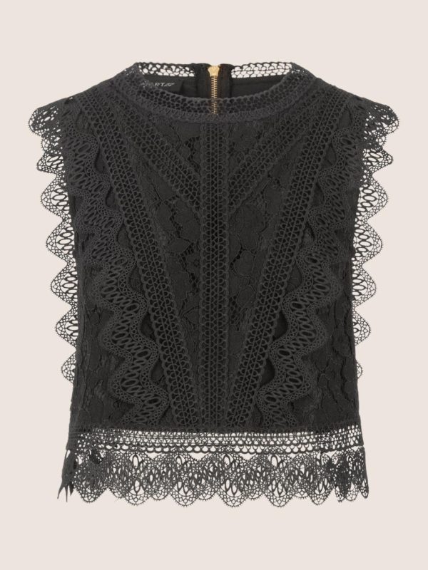 Spitzentop Mit Spitzenkragen Und Reißverschluss Schwarz | DAMEN APART Fashion OBERTEILE