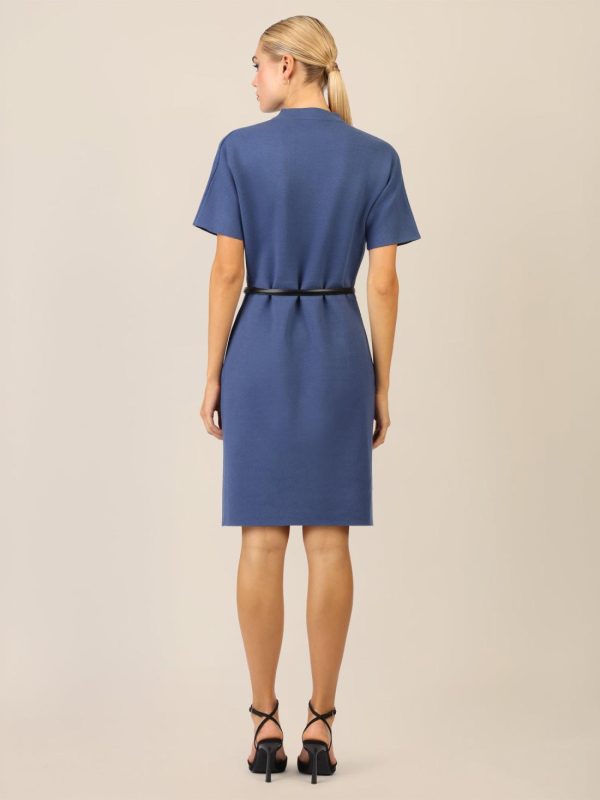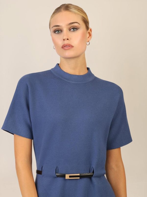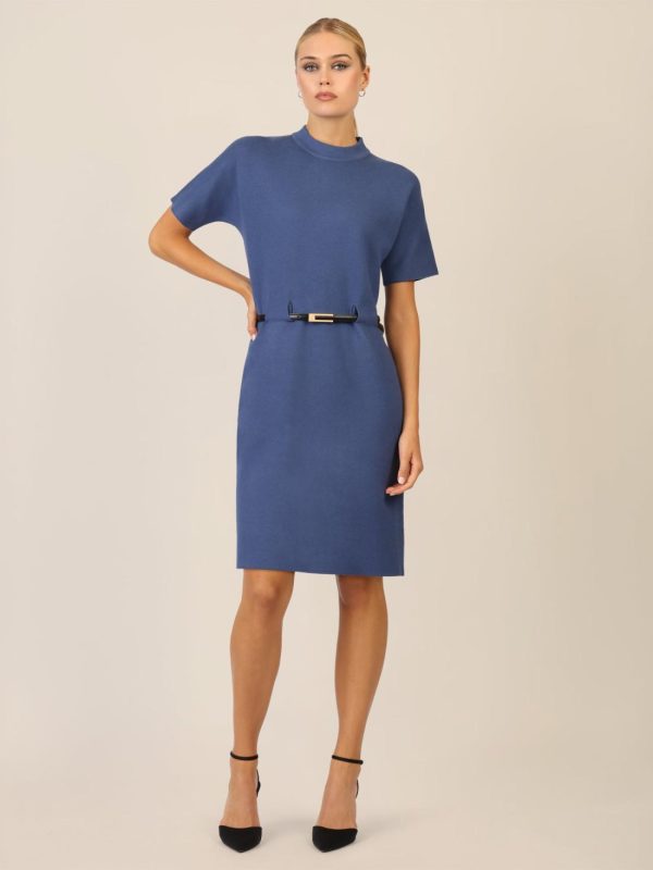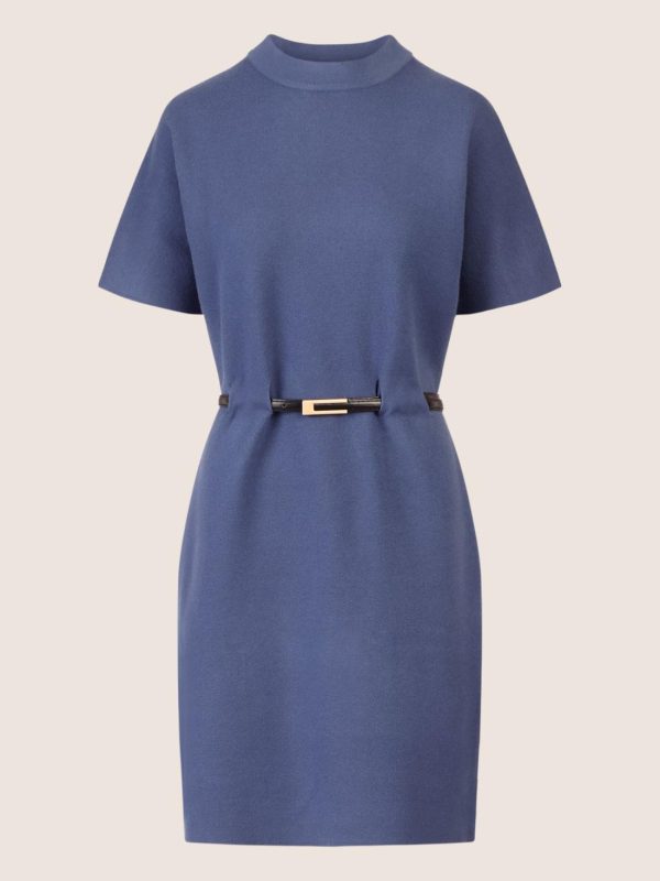 Strickkleid Mit Gürtel Und Stehkragen Mittelblau | DAMEN APART Fashion KLEIDER