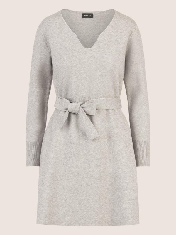 Dieses kurze Strickkleid aus hochwertiger Viskose-Kaschmir-Mischung im Milano Knit überzeugt mit seiner eleganten Silhouette. Der gebogene V-Ausschnitt verleiht dem Look eine sanfte Raffinesse, während der taillierte Rippenstrick für eine schmale Passform sorgt. Der Rockpart in schwungvoller Glockenform bringt verspielte Dynamik ins Design. Lange Ärmel mit Rippenbündchen sorgen für Komfort und eine cleane Optik. Das Highlight: Der separate Taillengürtel betont stilvoll die Körpermitte und rundet das Gesamtbild modisch ab. Ein Essential für stilbewusste Auftritte mit Wohlfühlfaktor!