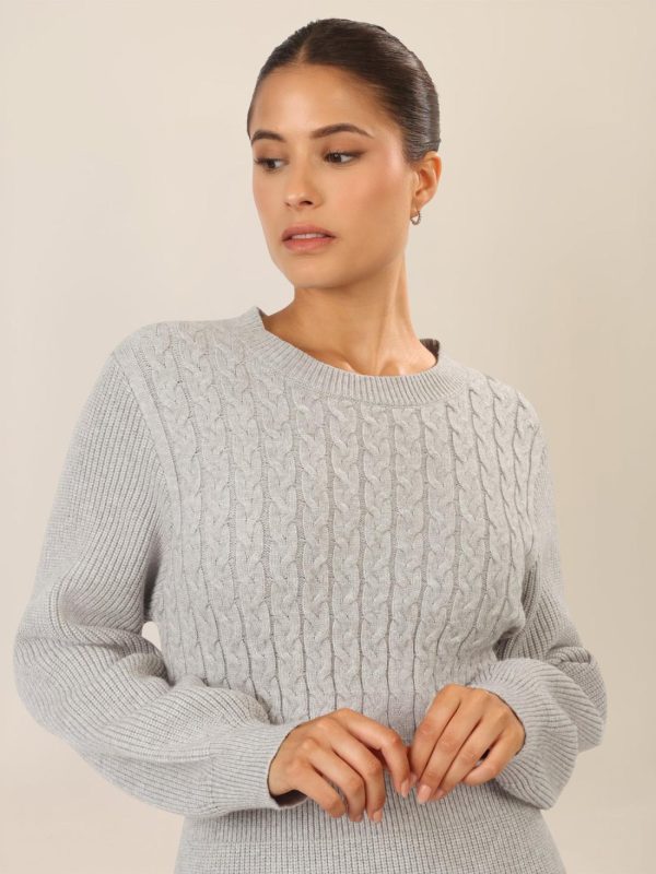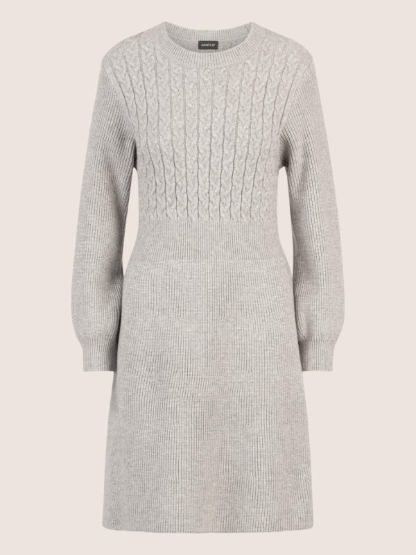 Strickkleid Mit Zopfmuster Graumeliert | DAMEN APART Fashion KLEIDER