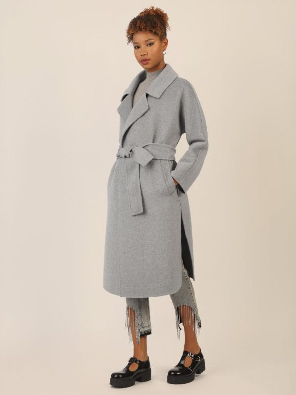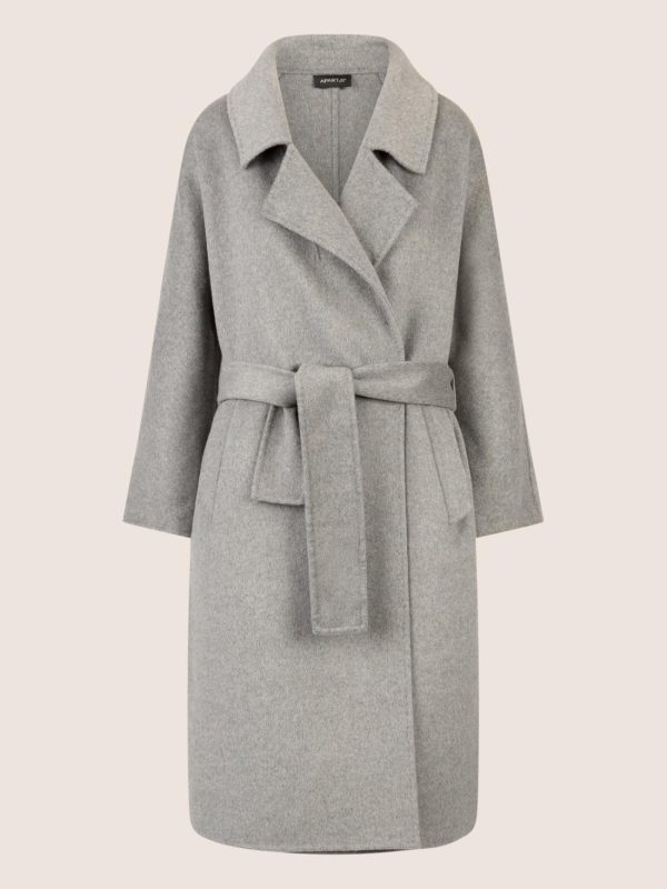 Dieser verschlusslose Mantel aus edlem Doubleface-Streichgarn vereint luxuriöse Schlichtheit mit lässigem Chic. Der elegante Reverskragen und die leicht überschnittenen Ärmel – vorne angeschnitten, hinten mit Raglannaht – sorgen für eine entspannte Silhouette mit modischem Anspruch. Seitliche, schräge Leistentaschen bieten praktischen Komfort, während lange seitliche Schlitze Bewegung und Leichtigkeit ins Spiel bringen. Mit dem separaten Bindegürtel lässt sich die Taille individuell betonen. Der Mantel ist ungefüttert und ideal für den stilvollen Layering-Look in der Übergangszeit.